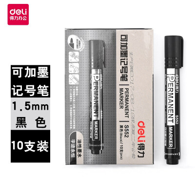 3583 得力(deli)记号笔 s552黑色 可加墨油性笔 不可擦 QL003583 S552 10支/盒 ¥1.5 加入询价