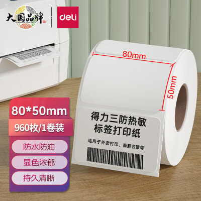 4063 得力(deli)80*50mm三防热敏标签打印纸 电子面单标签不干胶打印纸电子称条码纸960张*1卷 三防升级款12007 QL004063 ¥29.9 加入询价