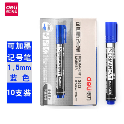 3585 得力(deli)记号笔 s552 蓝色 可加墨油性笔 不可擦 QL003585 S552 10支/盒 ¥1.5 加入询价