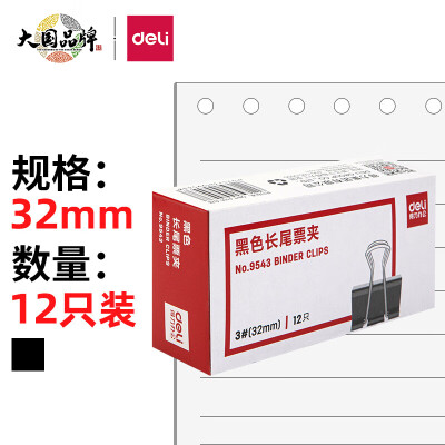 2619 得力(deli)9543-(黑)3#长尾票夹12只/盒 QL002619 9543 12只/盒 ¥6.9 加入询价