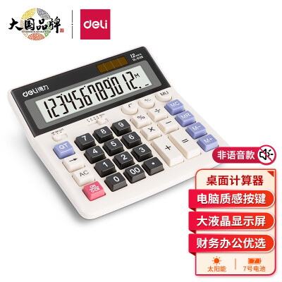 3385 得力(deli)双电源电脑按键计算器 12位大屏横式 白色2136 QL003385 ¥38 加入询价