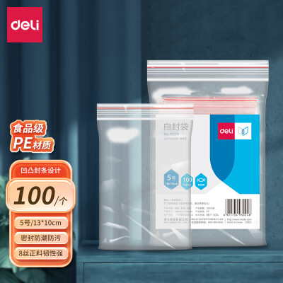 3203 得力(deli)食品密封袋5号13*10cm 加厚防水PE透明收纳防尘 (100只透明/包) 3024 QL003203 ¥9 加入询价