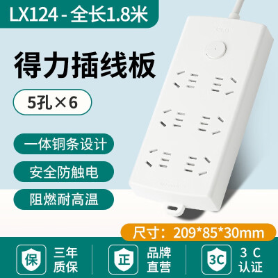 3592 得力(deli)新国标安全插座/拖线板 总控开关 6孔3米LX24-03 QL003592 ¥45.5 加入询价