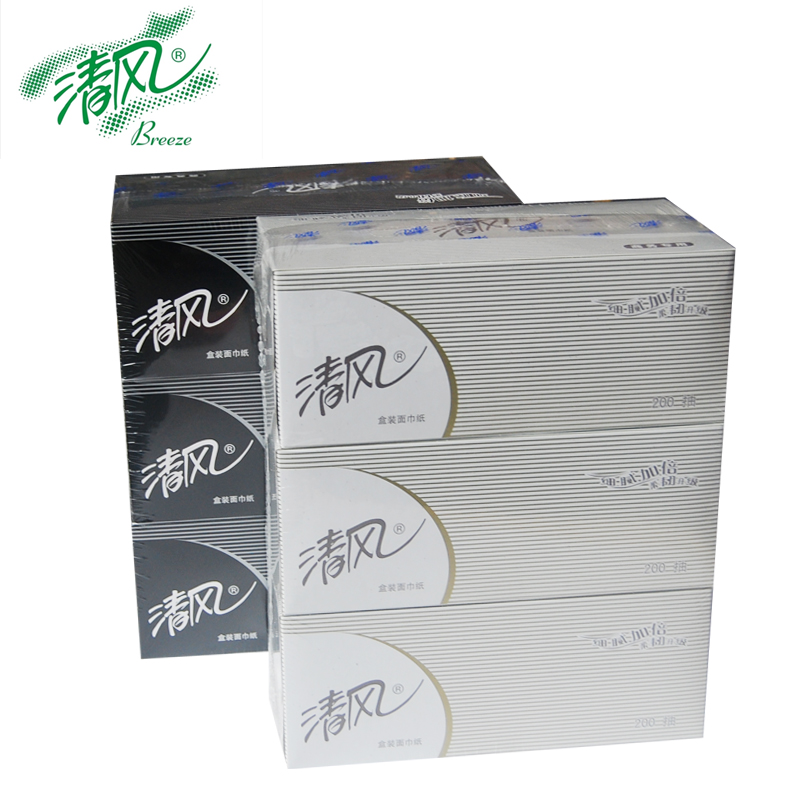 清风B338A2/A338SHTW白加黑双层盒装面纸-200抽