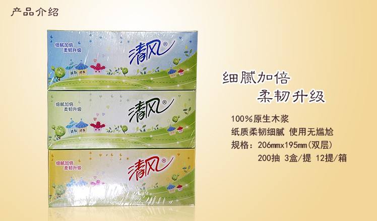 清风A338SHQ3双层卡通盒装面纸-200抽