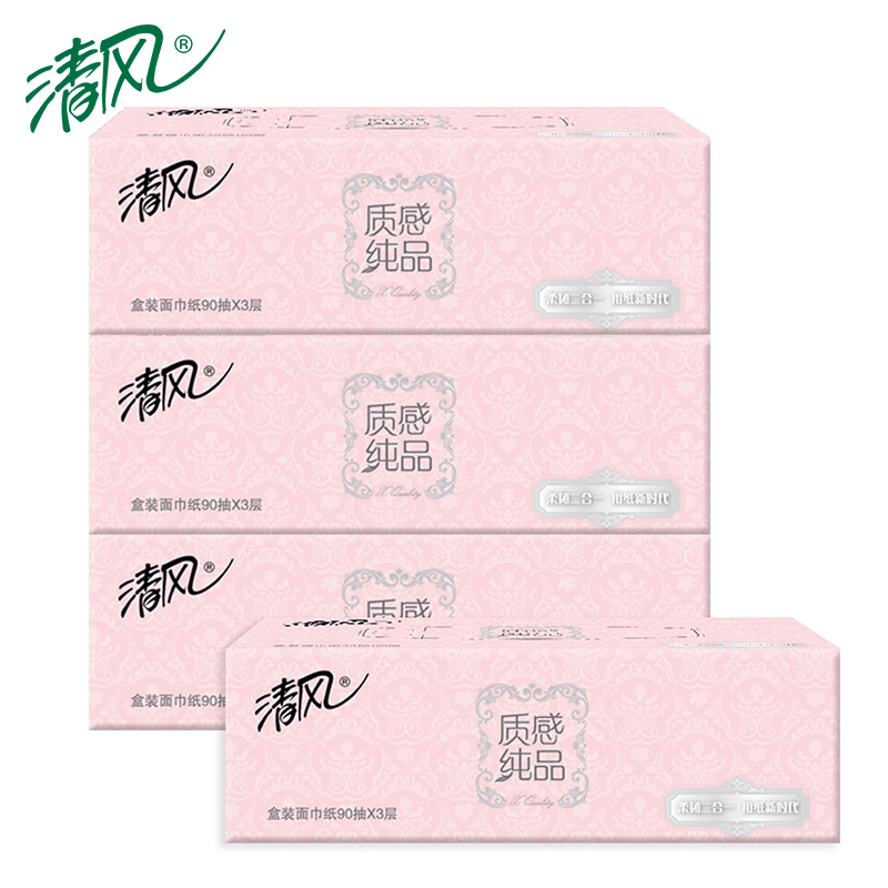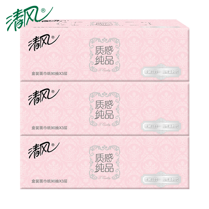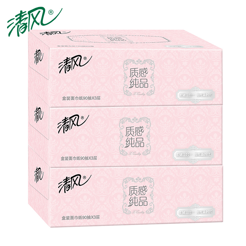 清风B332XN1三层质感纯品盒装面纸-90抽 206*195mm,3层,90抽