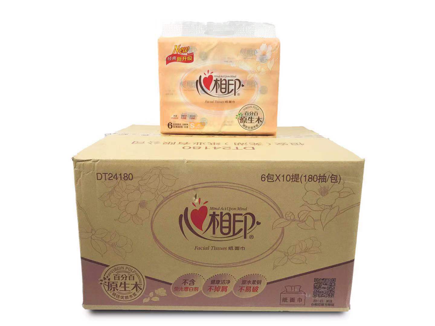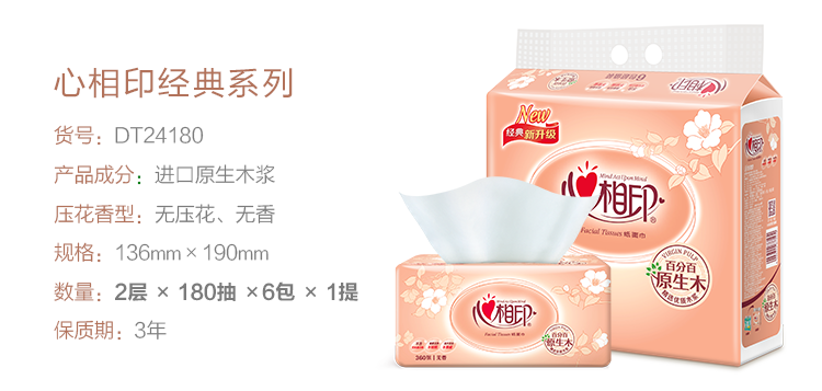 民用-心相印DT24180双层塑包面纸-180抽 136*190mm,双层