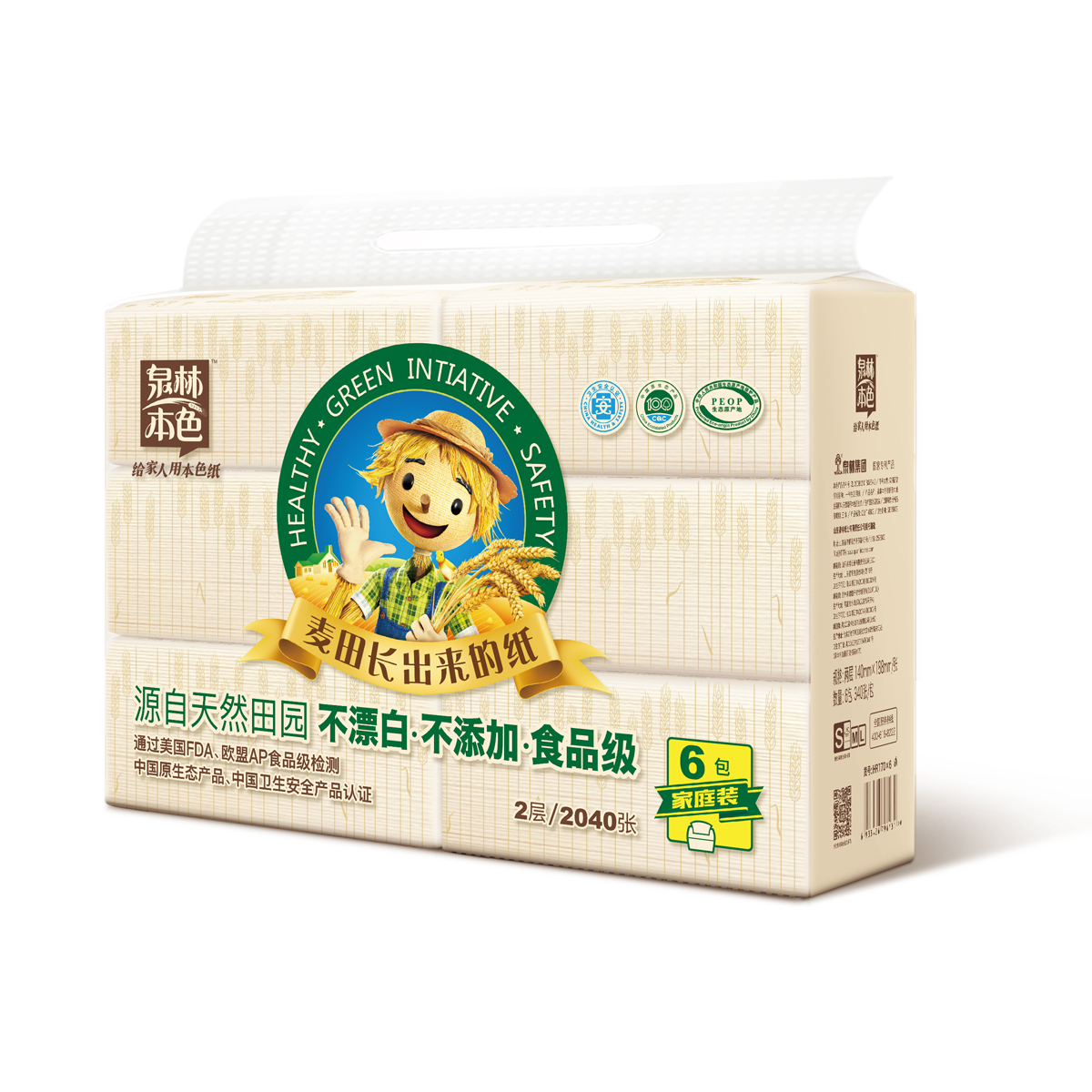 民用-泉林本色HR170*6环保装软抽面巾纸-170抽 188*140mm,2层,170抽