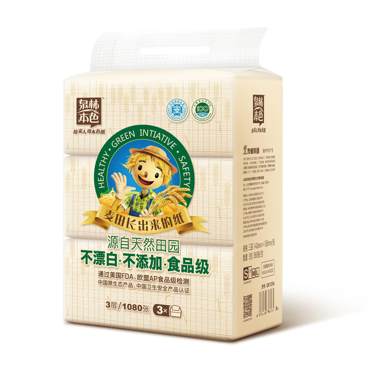 民用-泉林本色QR120A百草舒塑装面巾纸-120抽 140*188mm,3层,120抽