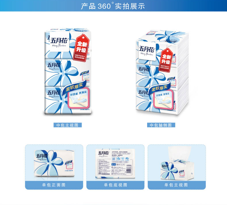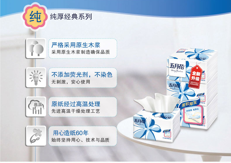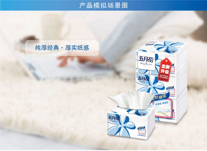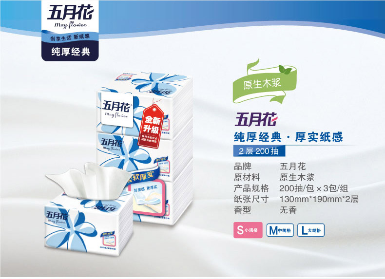 五月花A1983N0纯厚经典塑包面纸-200抽(小幅)