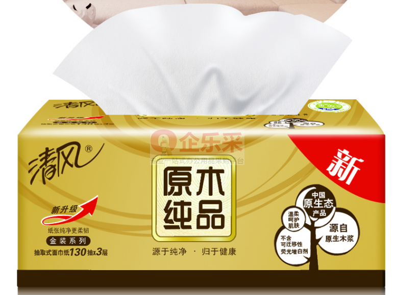 清风BR85SJ1三层原木纯品金装塑包面纸-130抽