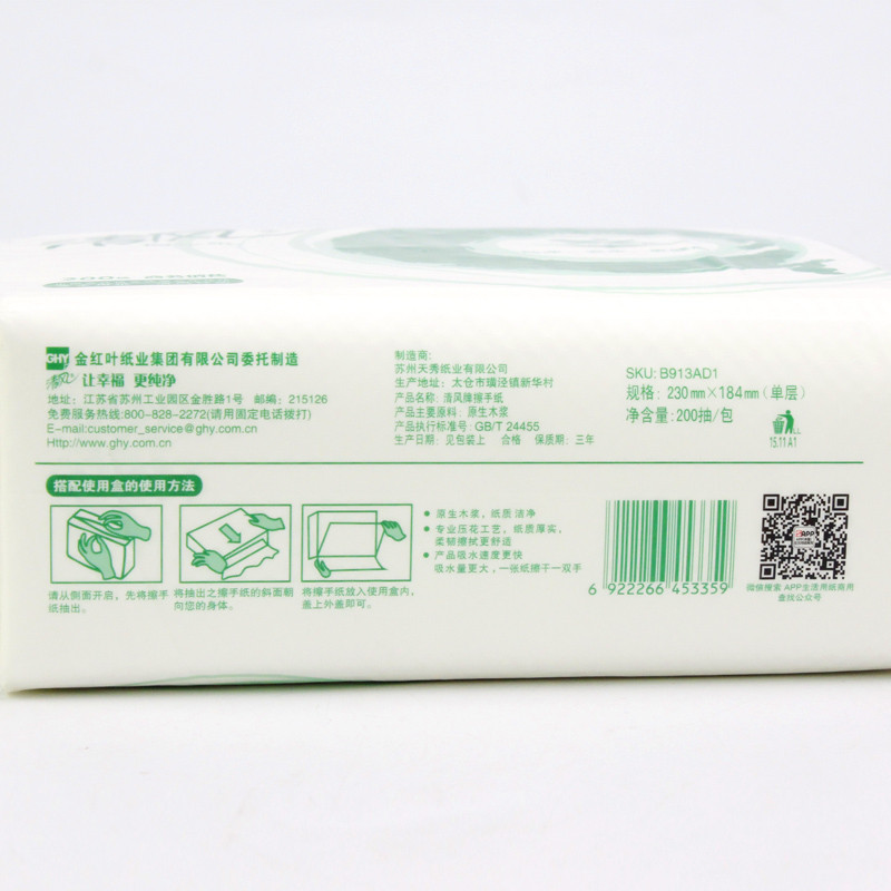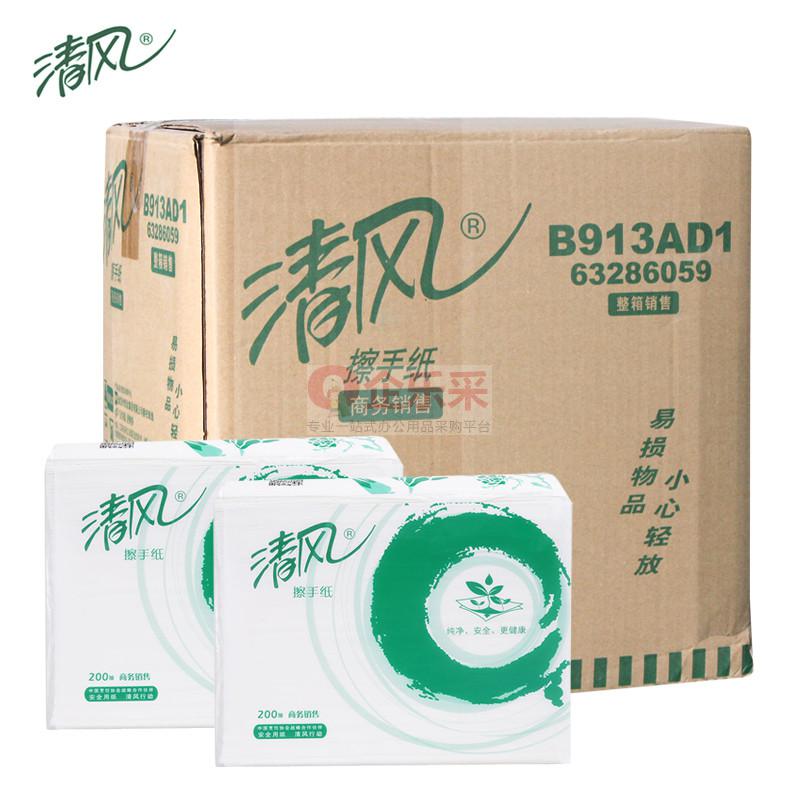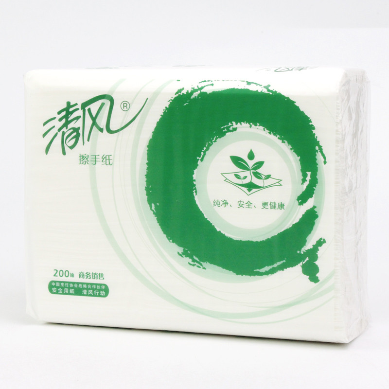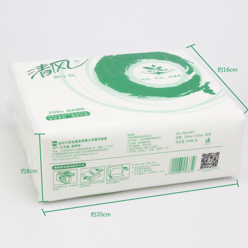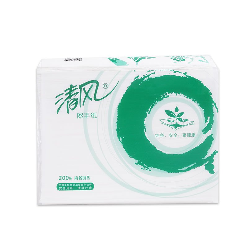清风B913AD1单层三折擦手纸-200张(平口预制袋)