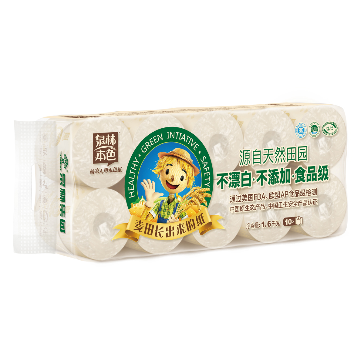 民用-泉林本色BK160百草舒10粒装卷筒卫生纸-160g 105*110mm,3层,160g