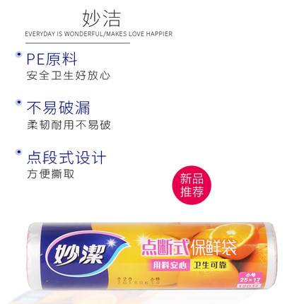 妙洁C型MBRSC120点断式保鲜袋小号25cm*17cm*120只