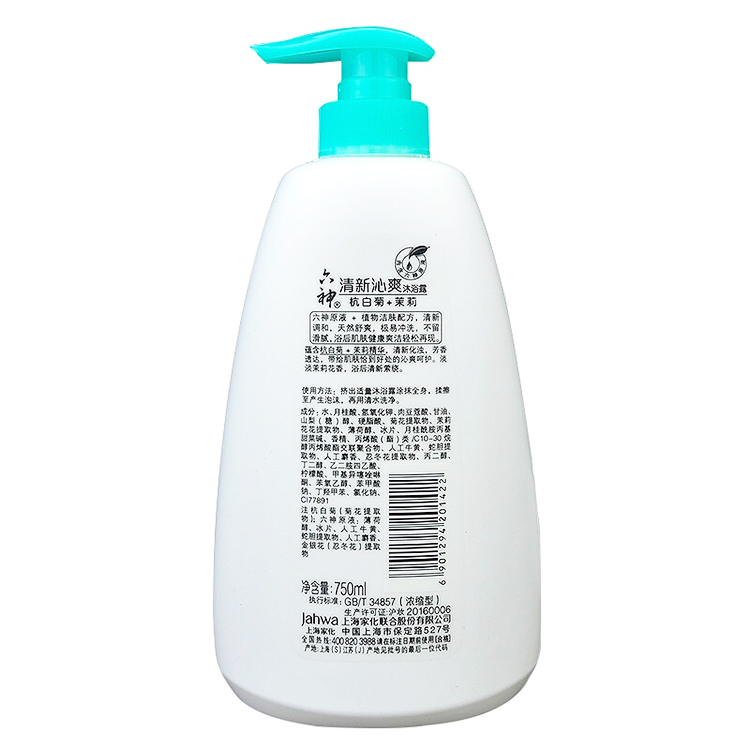 六神清新沁爽沐浴露(杭白菊+茉莉)750ml*4*2