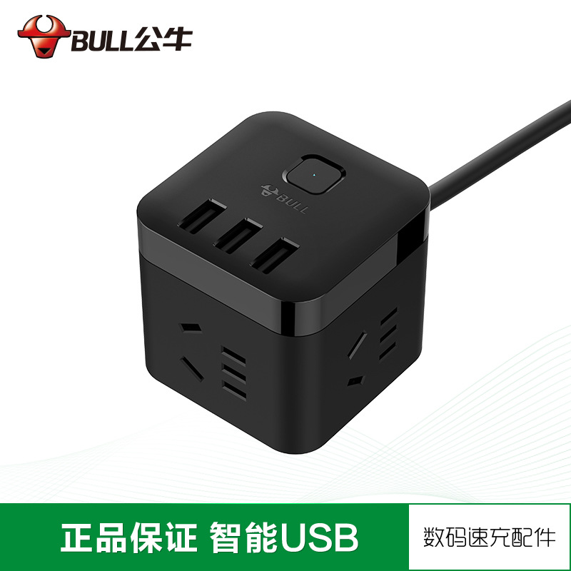 公牛GN-U303H(黑色)(新国标)电源插线板 1.5M盒