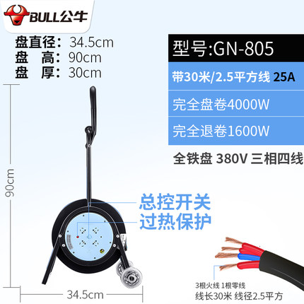 公牛GN-805(新国标)电源插线板50M盒2.5平方