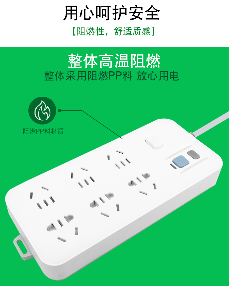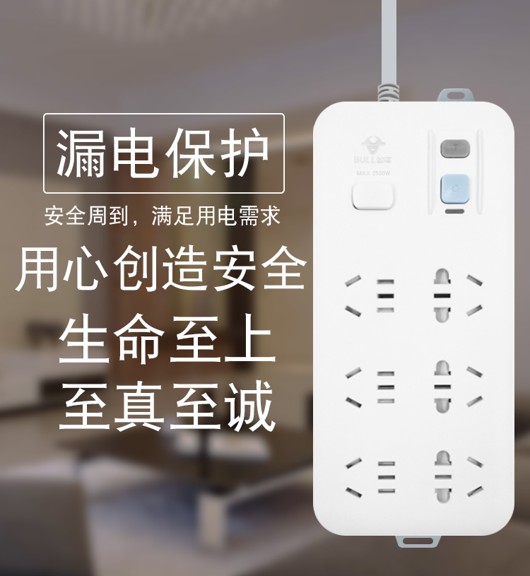 公牛(BULL)GN-705(白色)新国标 六位总控 漏电保护 电源插线板10M袋