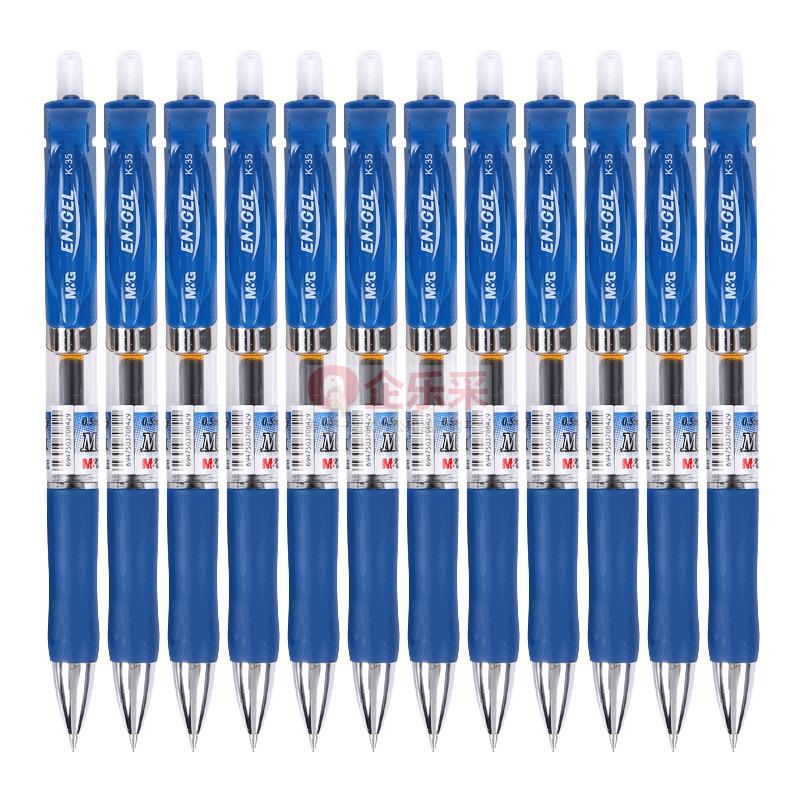 晨光(M&G)文具K35墨蓝色0.5mm经典按动子弹头中性笔签字笔水笔 12支/盒
