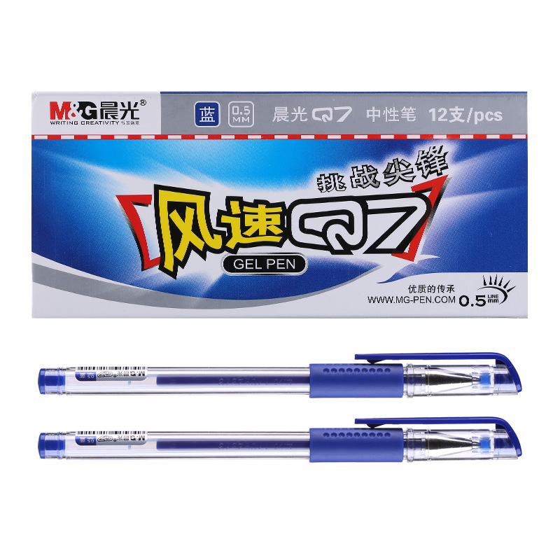 晨光(M&G)文具Q7蓝色0.5mm经典拔盖子弹头中性笔 签字笔 水笔 12支/盒