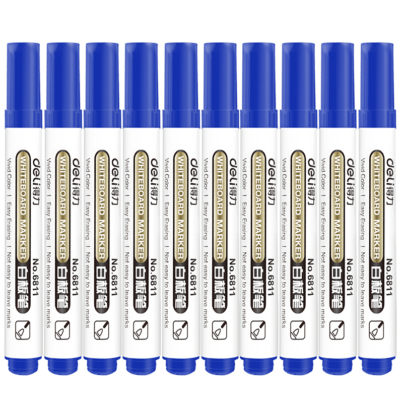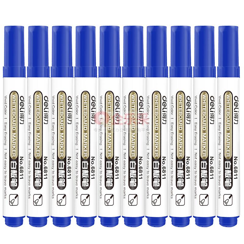 得力(deli)办公会议白板笔 可擦易擦蓝色 10支/盒6811