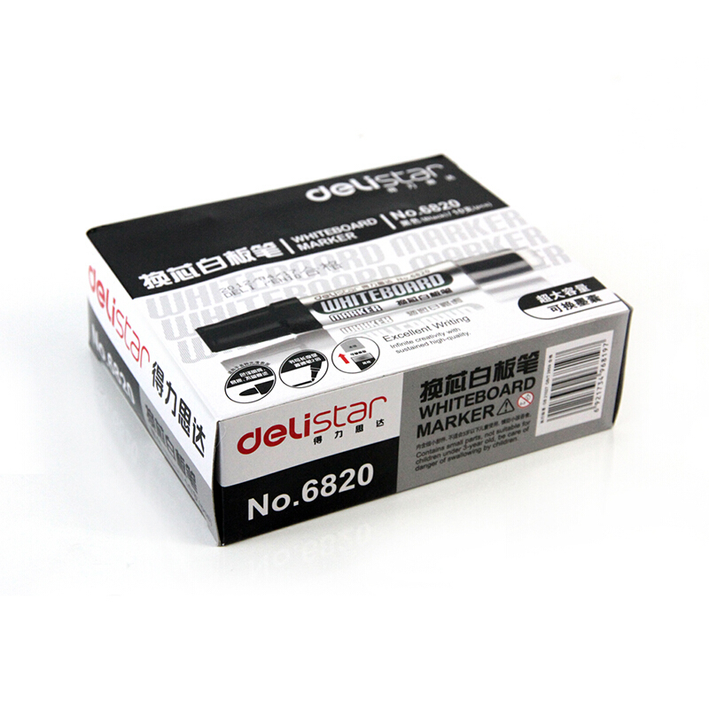 得力(deli)可换芯白板笔 可擦易擦 10支/盒 黑色