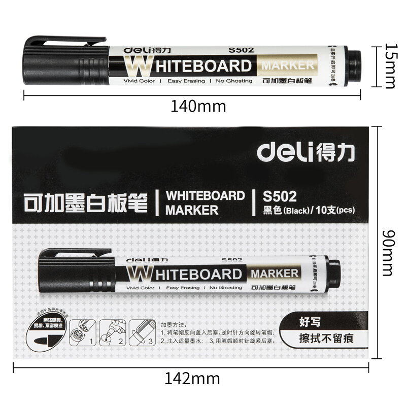 得力(deli) S502(黑)思达白板笔可加墨