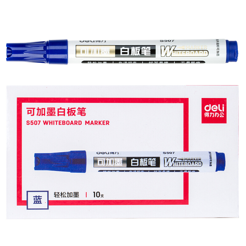 得力(deli) S507可加墨白板笔 可擦易擦(蓝色)