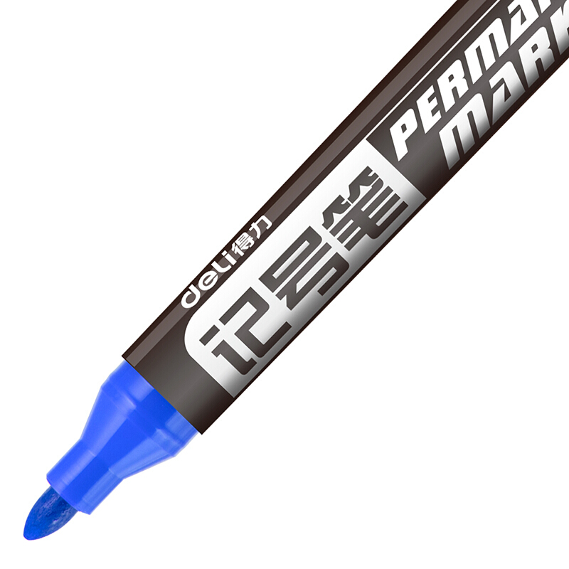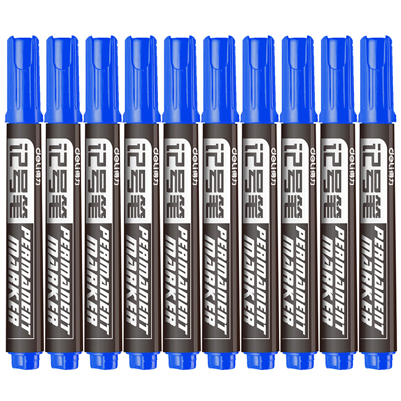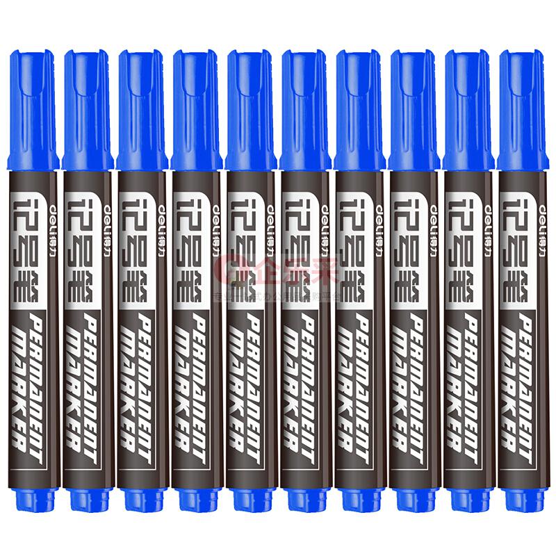 得力(deli)蓝色粗头物流油性记号笔大头笔 10支/盒6881
