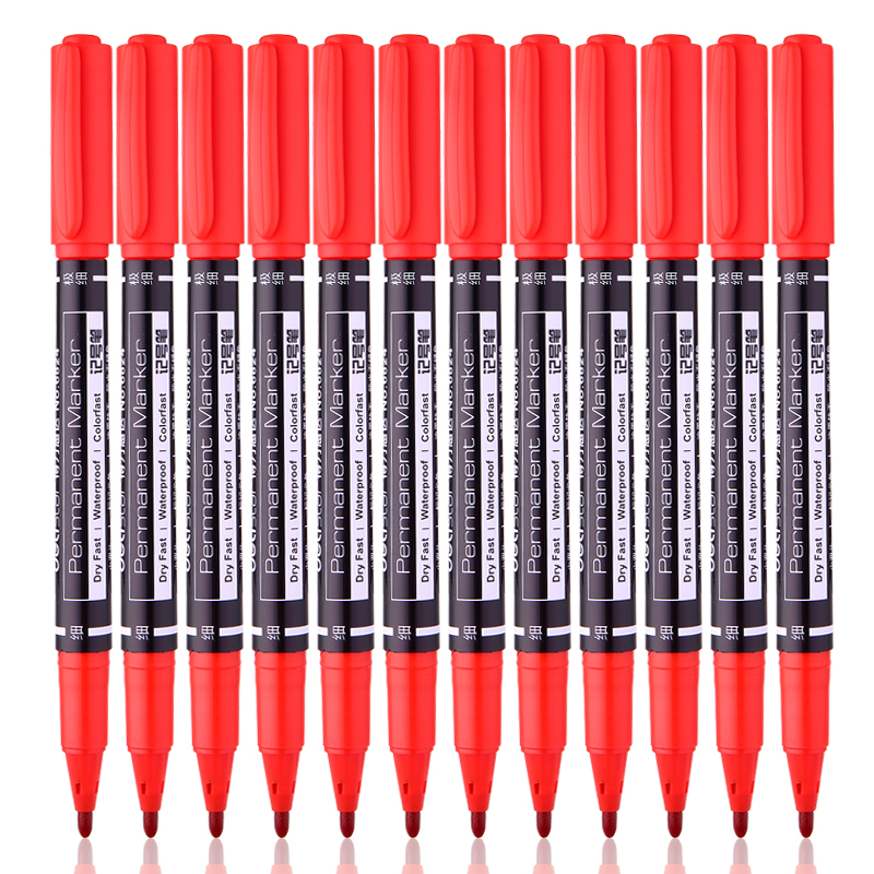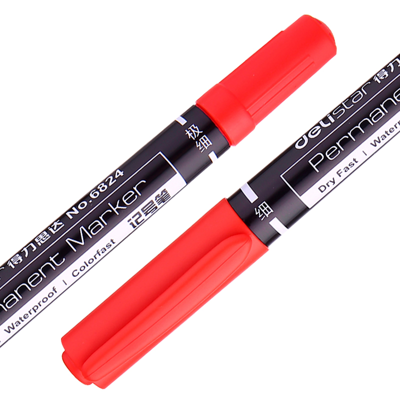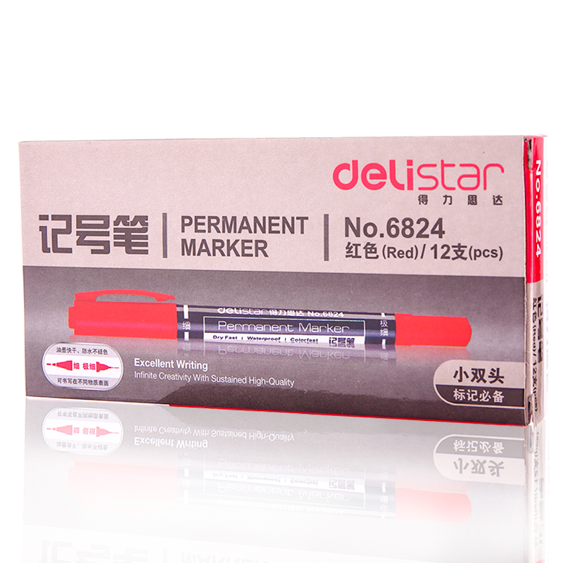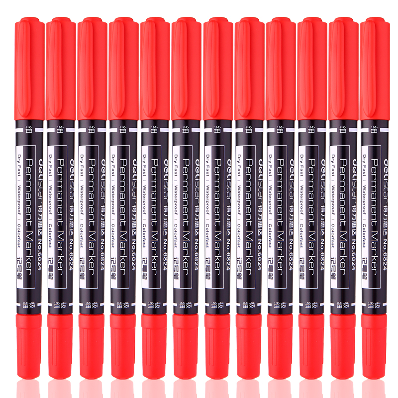 得力(deli) 思达6824(红)记号笔小双头(12支)