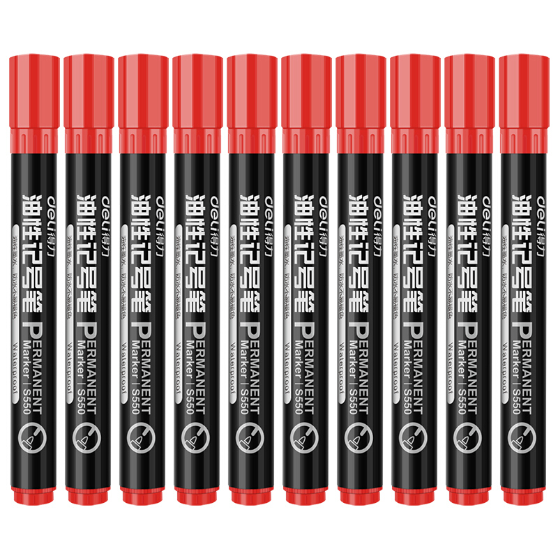 得力(deli) S550(红色)思达记号笔油性 10支/盒