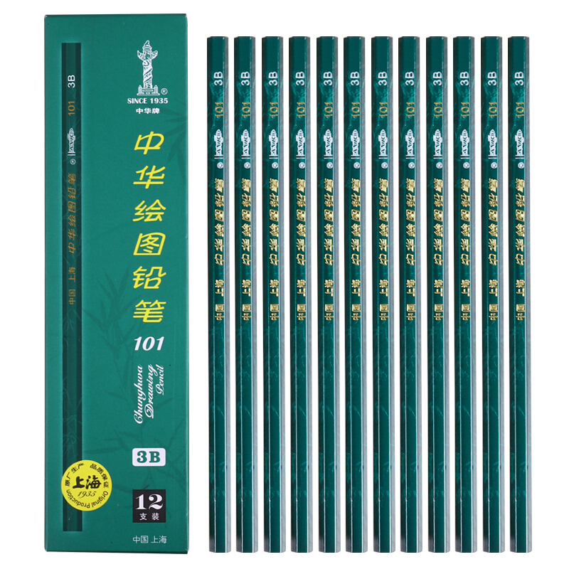 中华 101-3B 绘图铅笔学生铅笔 美术素描3B铅笔12支盒