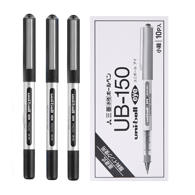 日本三菱(Uni)UB-150中性笔直液式走珠笔签字笔 0.5mm耐水考试财务用笔黑色 10支/盒 原装进口