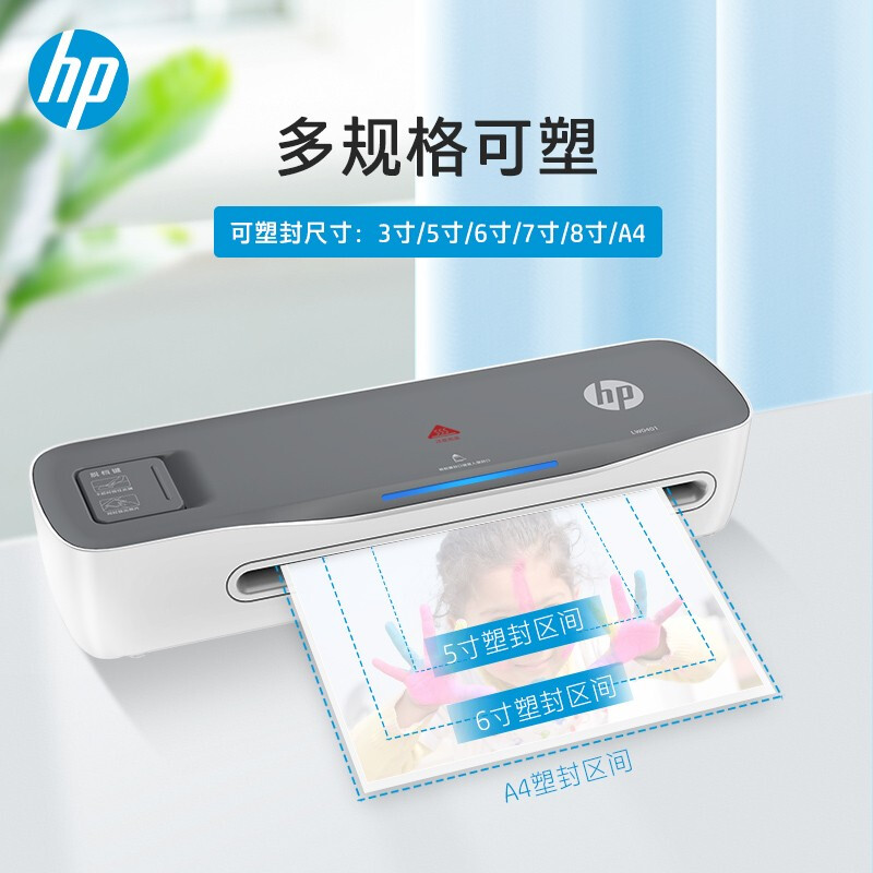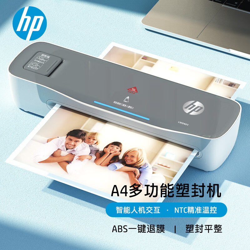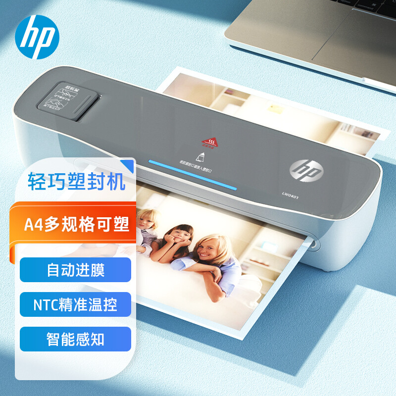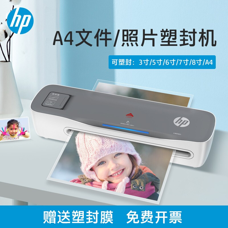 HP惠普 A4文件照片塑封机 非真空包装机 小型家用过塑机 预热提醒快速过胶覆膜机多尺寸塑封LW0401