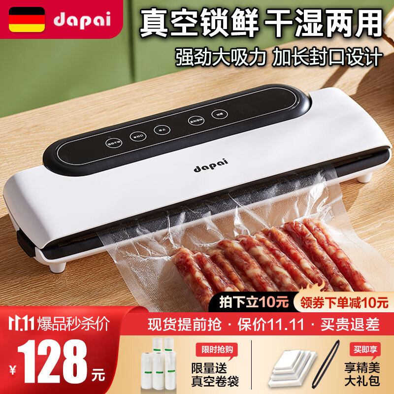 达派(dapai) 德国真空包装机全自动真空机家用商用抽真空封口机干湿两用食品塑封机熟食保鲜机 DS2300干湿油粉通用(下单享真空袋子)