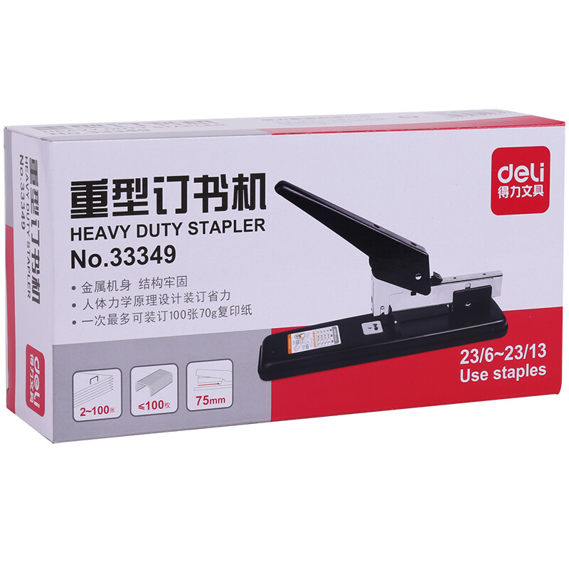 得力(deli)100页重型订书机/订书器 适配23/6~23/13订书钉 办公用品 黑色33349