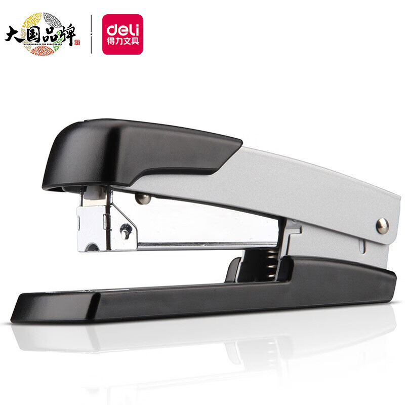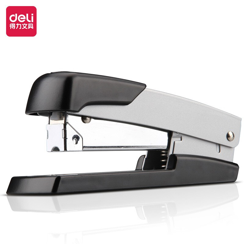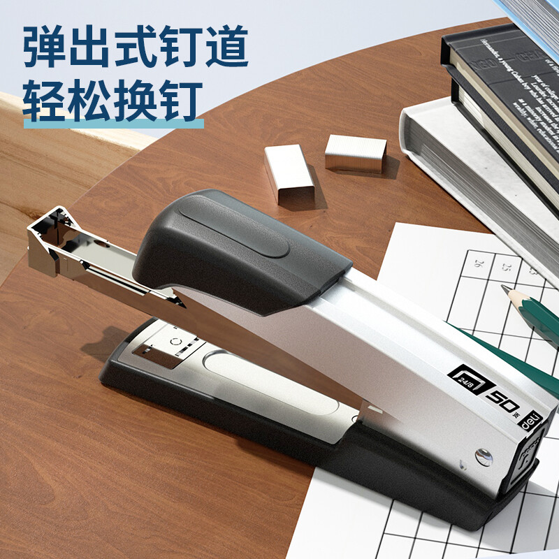 得力(deli)轻便型厚层订书机/订书器 金属材质可钉50页 银色0416
