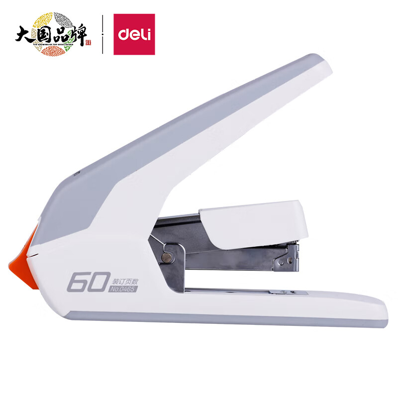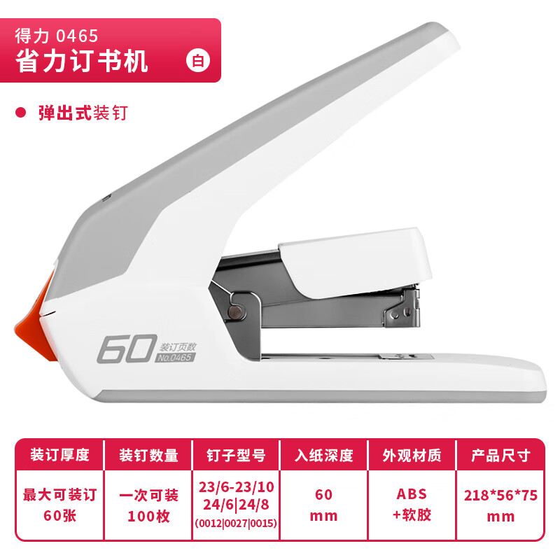 得力(deli)60页省力厚层订书机/订书器 适配23/6~23/10订书钉 白色0465