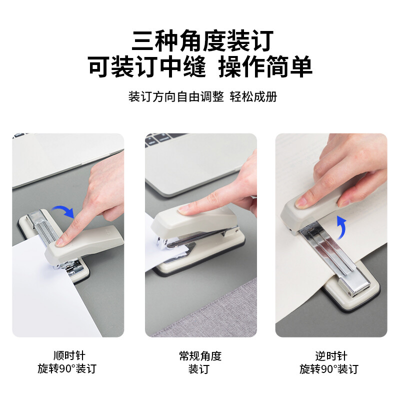 得力(deli)12#50页旋转式订书机 厚层订书器 中缝装订 临时装订可拆 办公用品 灰色0414S