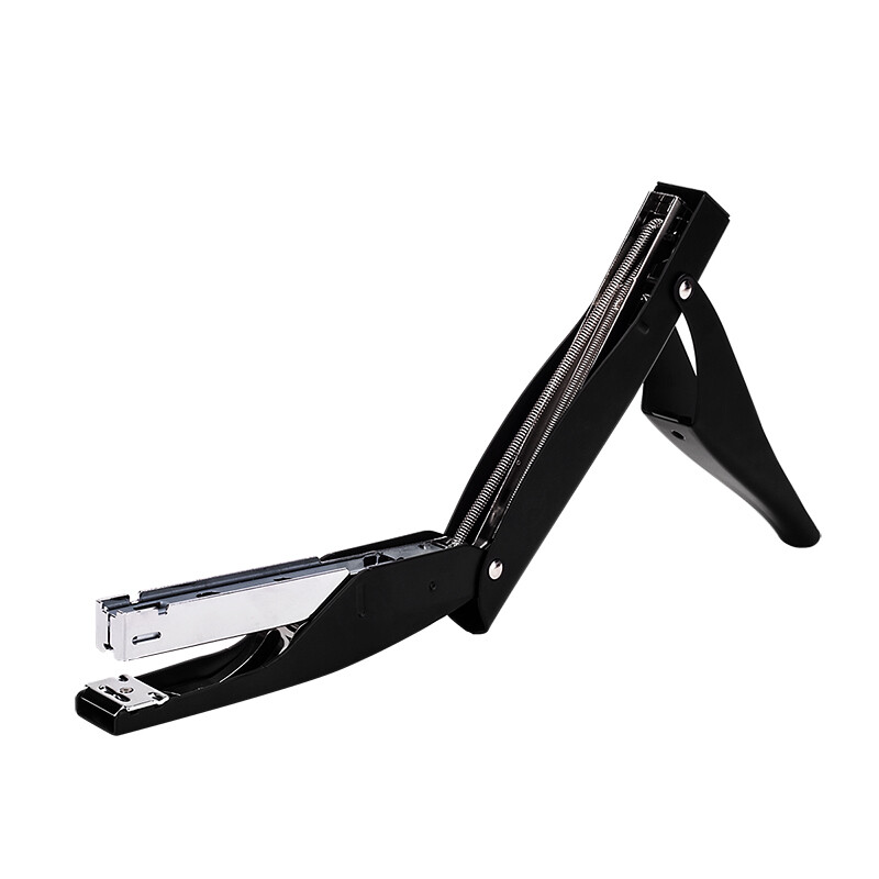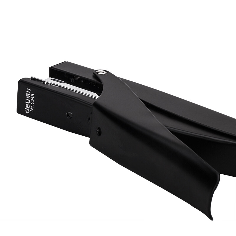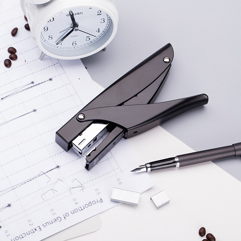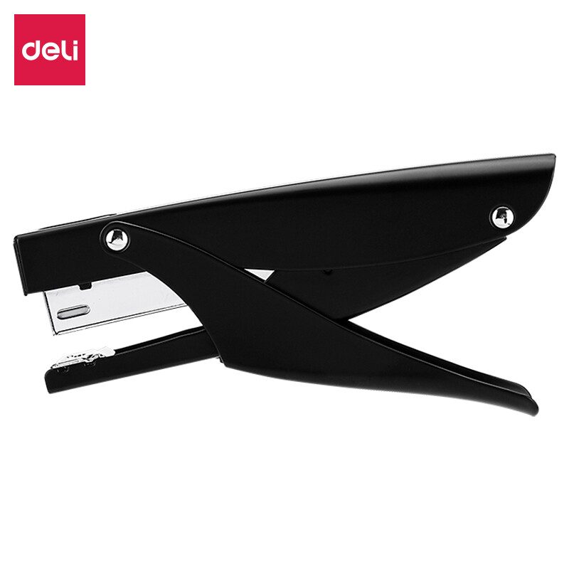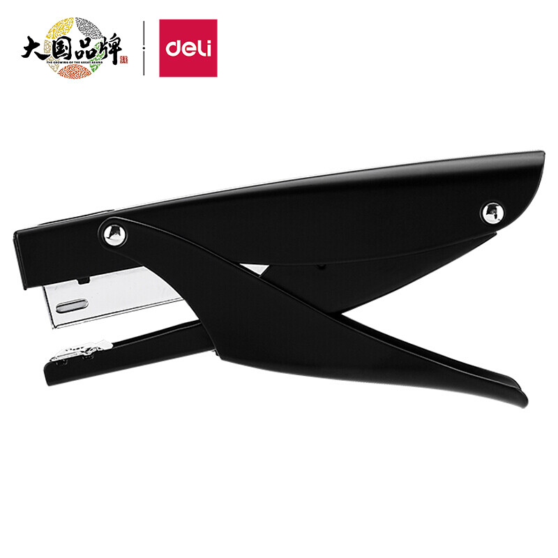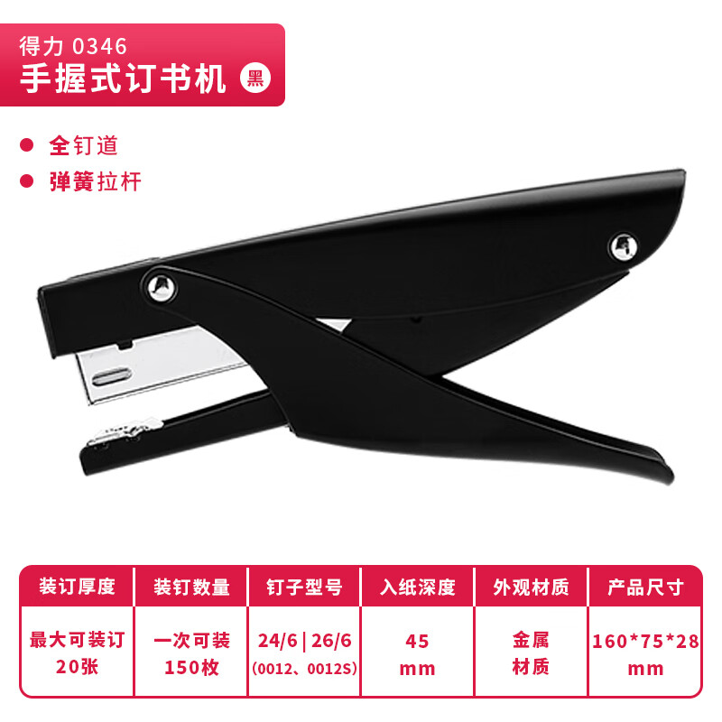 得力(deli)手握式金属质感耐用订书机/订书器 外卖打包便携手持装订 适配12#订书钉 黑色