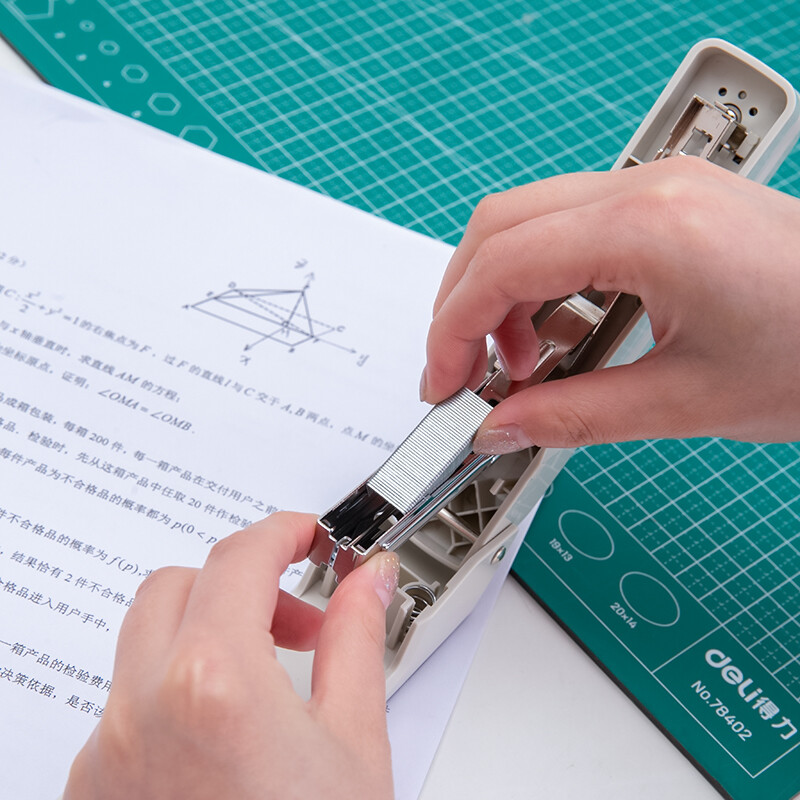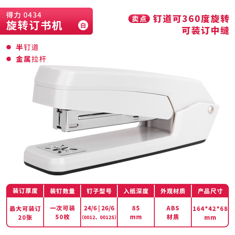 得力(deli)12#旋转订书机 中缝装订订书器 临时装订 白色0434