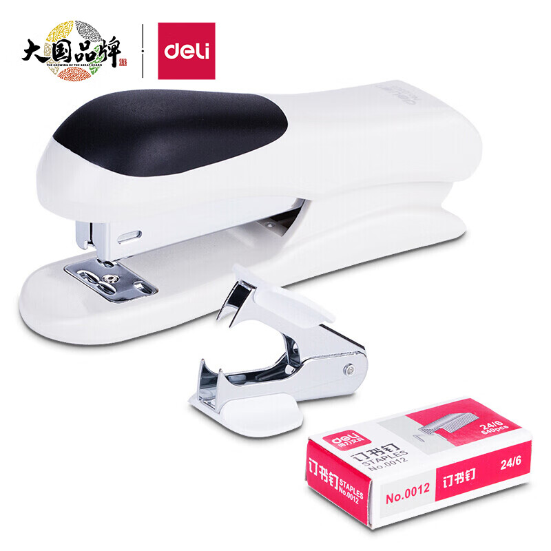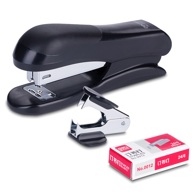 得力(deli)12#耐用订书机套装(起订器+订书钉+订书器) 办公用品 颜色随机0355