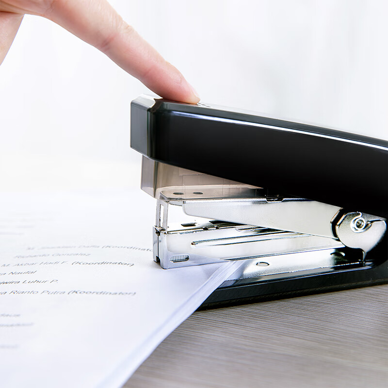 得力(deli)省力结构专利订书机/订书器 适配12#订书钉 可装150枚钉 办公用品 黑色0468