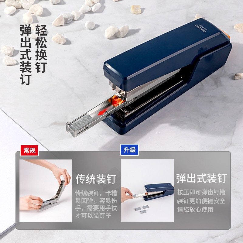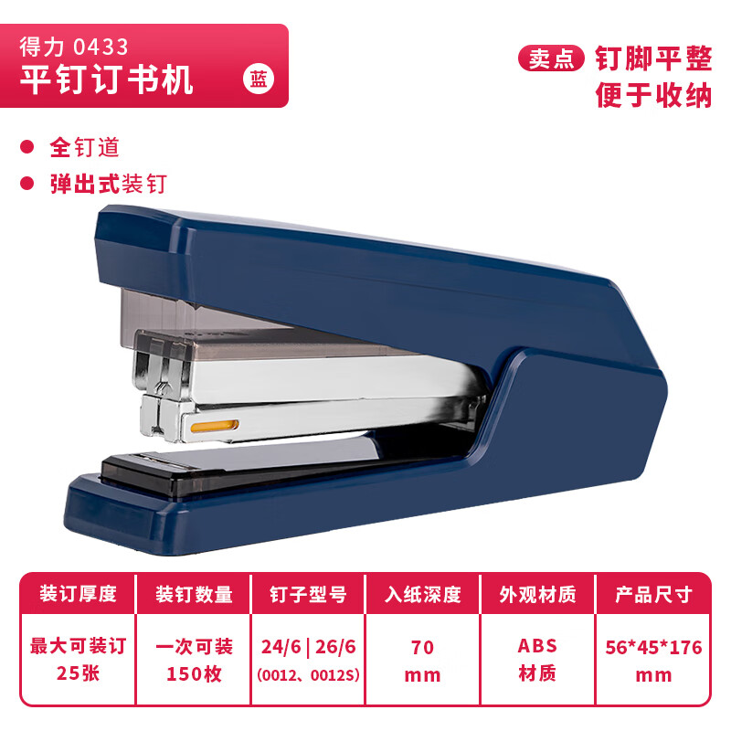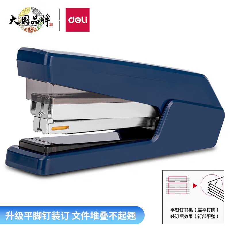 得力(deli)平钉省力型订书机/订书器 单指按压平钉包角 蓝色0433