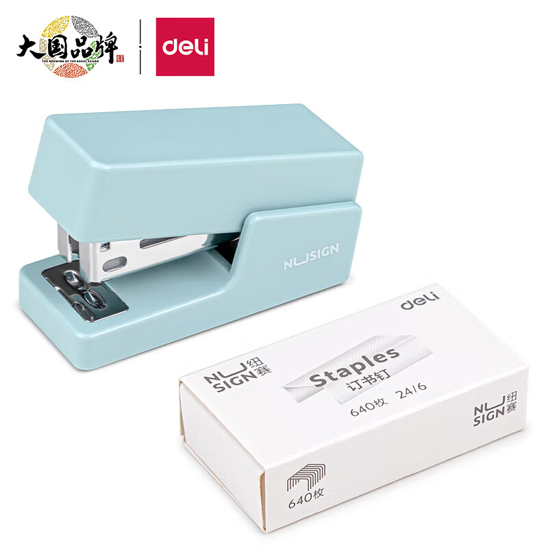 得力纽赛迷你小号订书机 学生办公轻巧便携手握式省力定书装订机 蓝NS083附订书钉