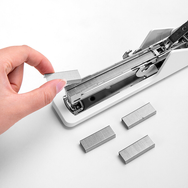 得力(deli)省力结构专利订书机/订书器 适配12#订书钉 可装150枚钉 白色