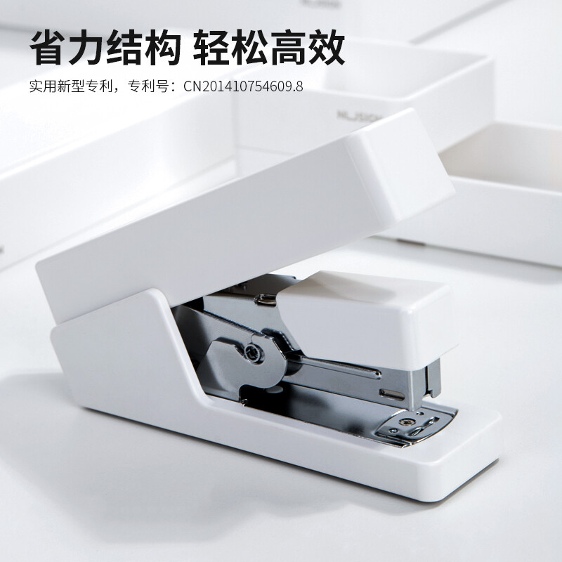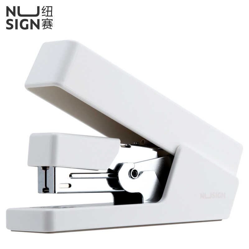 纽赛(NUSIGN)省力订书机 省力按压专利 德国创意设计桌面订书器装订器办公用品12#钉 象牙白NS081