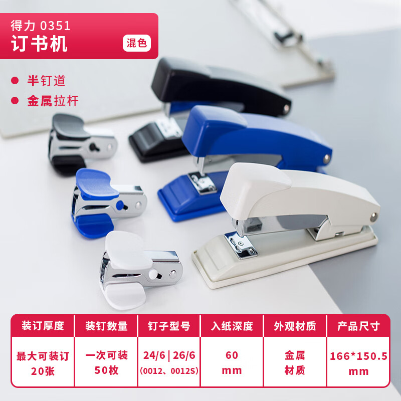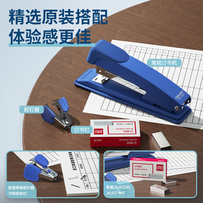 得力(deli)12#订书机套装(起订器+订书钉+订书机) 订书器 颜色随机