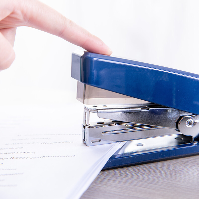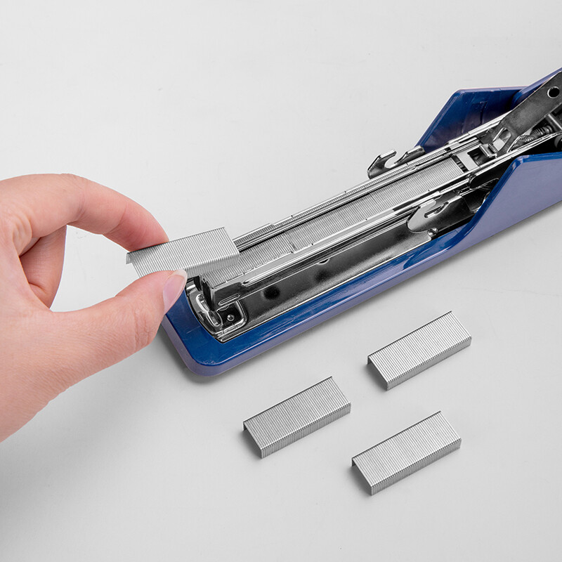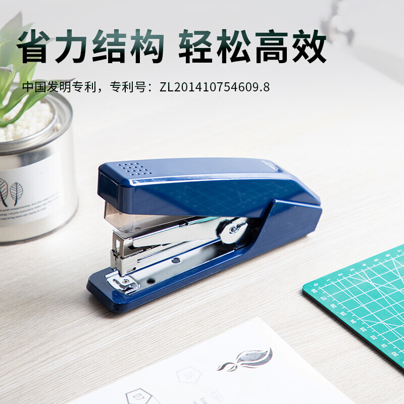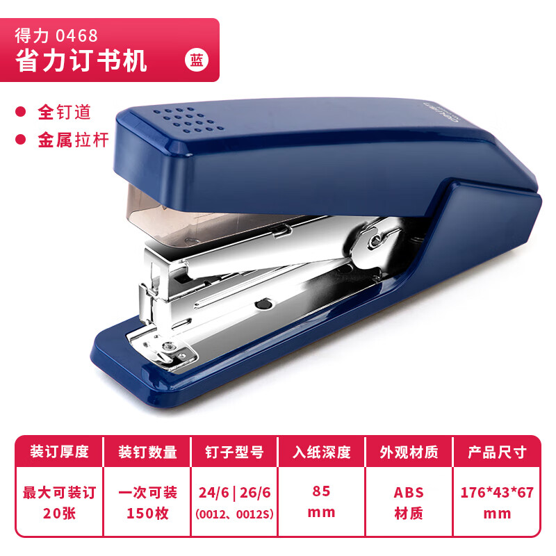 得力(deli)高效省力结构订书机/订书器 适配12#订书钉 可装150枚钉 蓝色0468