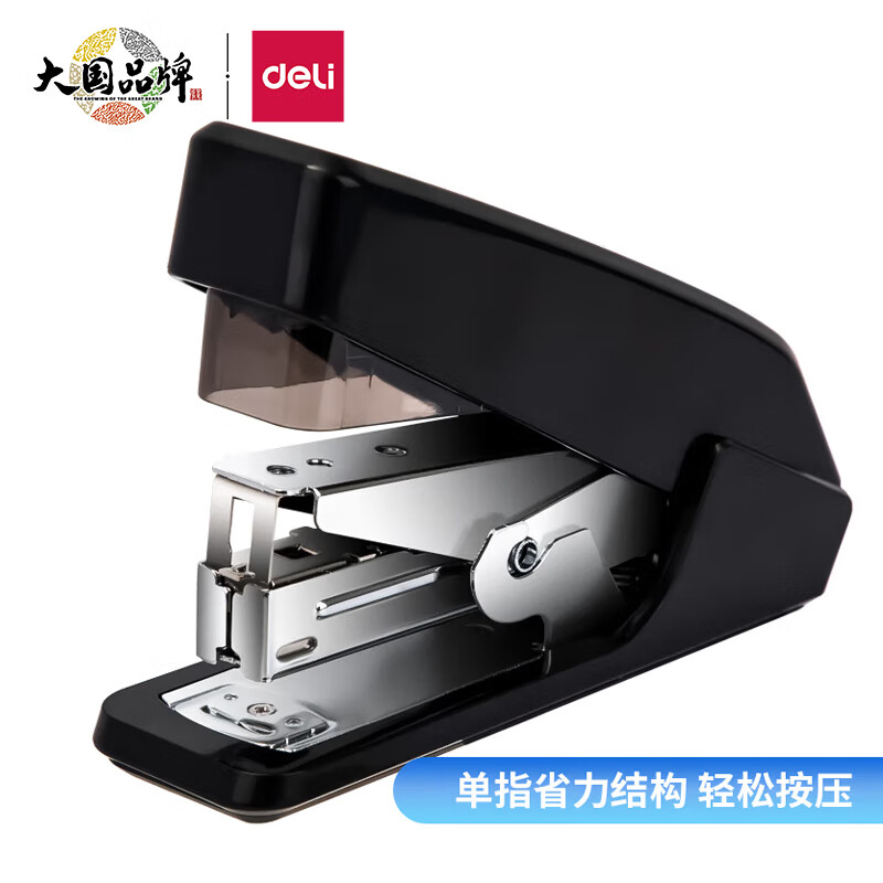 得力(deli)单指按压省力订书机/订书器 适配12#订书钉 可装100枚钉 黑色
